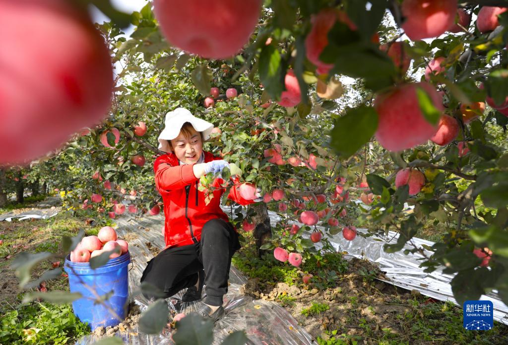 10月26日,河北順平縣南神南村果農在果園采摘蘋果。