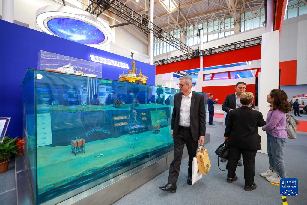 10月26日,在天津梅江會展中心,觀眾在國際礦業展覽會上參觀海域礦產資源開采模型。