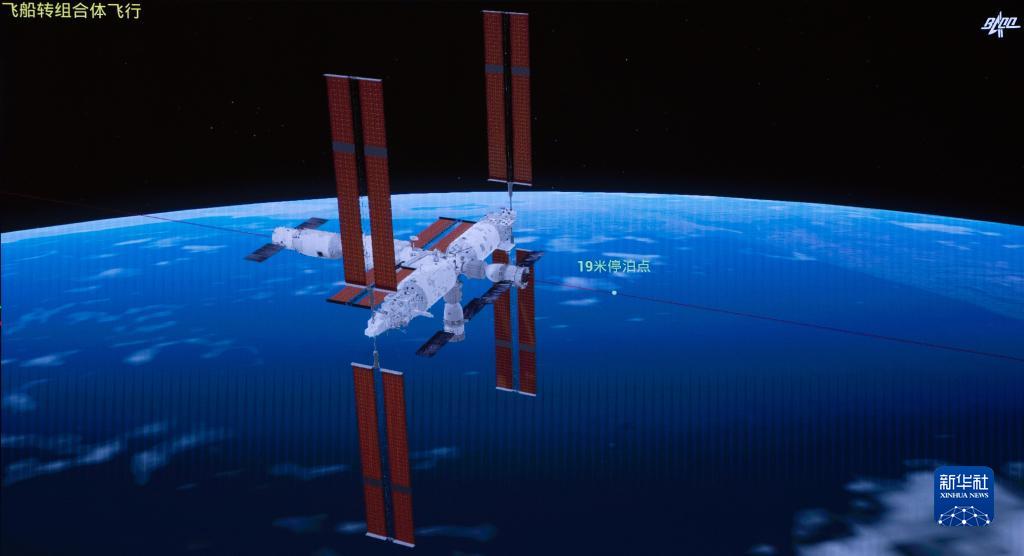 10月26日在北京航天飛行控制中心拍攝的神舟十七號載人飛船和空間站天和核心艙前向端口對接過程的畫面。