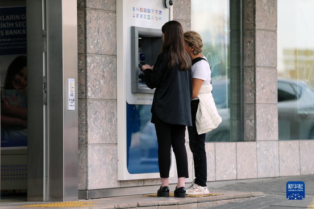 10月26日,在土耳首都其安卡拉,兩名女子在一處銀行自動柜員機前辦理業務。
