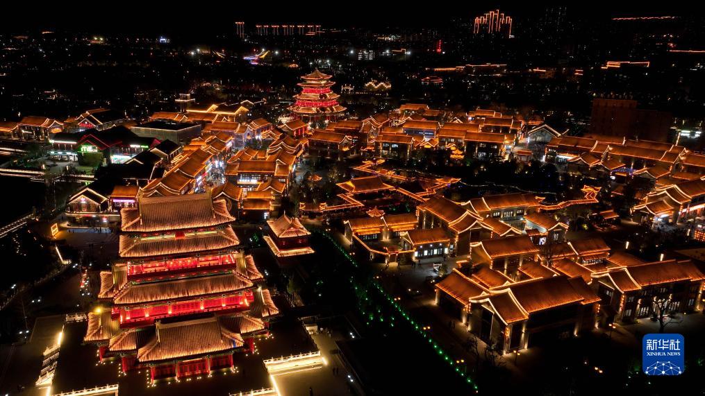 入夜時分,在河北省滄州市中心城區大運河畔,匯集美食、文創、民俗等多種元素的南川老街燈火輝煌。