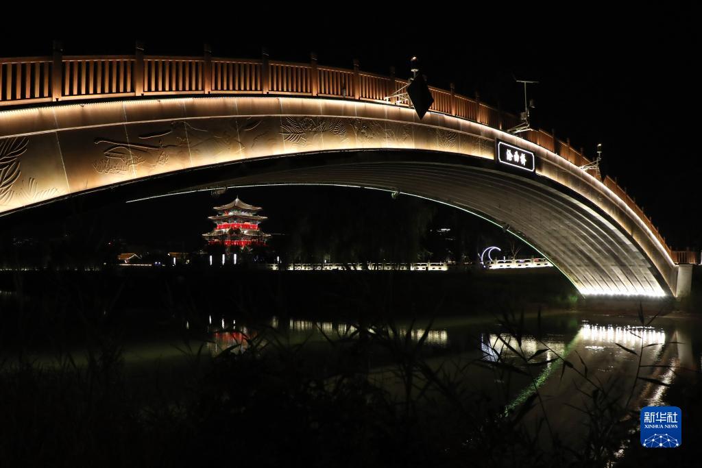 入夜時分,在河北省滄州市中心城區大運河畔,匯集美食、文創、民俗等多種元素的南川老街燈火輝煌。