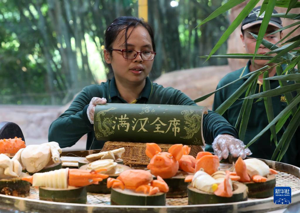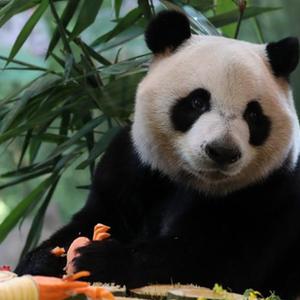 10月27日是國際熊貓日。廣州長隆野生動物世界保育員為大熊貓“酷酷”準備了豐盛的“滿漢全席”,包括“鳳尾魚翅”“干連福海參”“羅漢大蝦”等八大菜式。