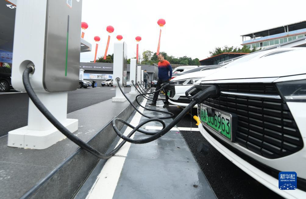 10月27日,新能源汽車在福州市倉山區齊安路的齊安智檢超充站充電。