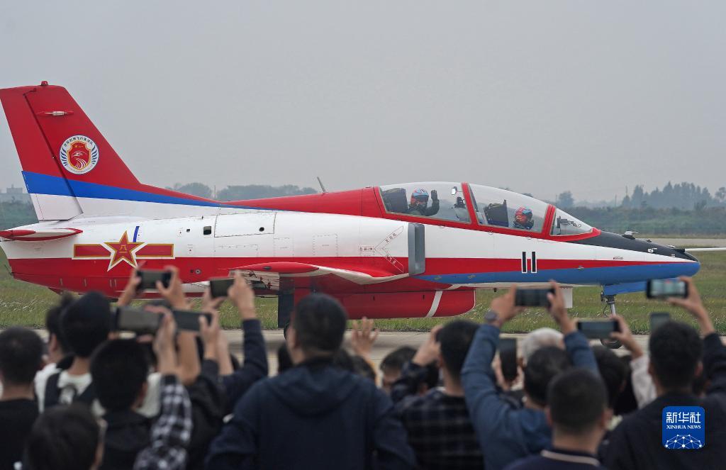 空軍航空大學“紅鷹”飛行表演隊從觀眾面前駛過(10月27日攝)。