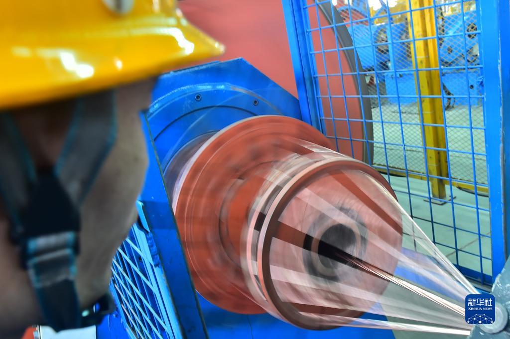 10月27日,技術工人在山東省聊城市陽谷縣漢河(陽谷)電纜有限公司生產車間電纜生產線上值守。
