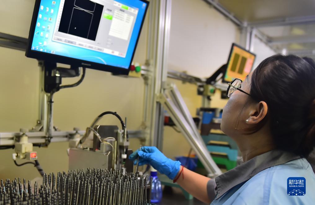 10月26日,在山東省聊城市高新區山東鑫亞格林鮑爾燃油系統有限公司生產車間,技術人員在生產線上檢驗產品。