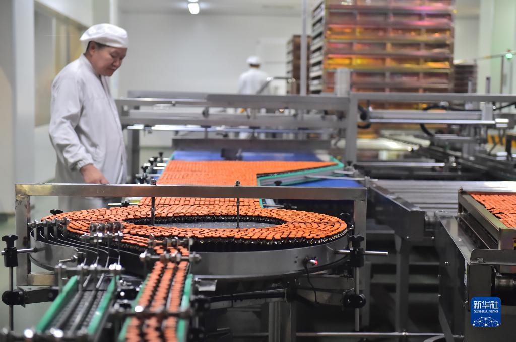 10月27日,工人在山東省聊城市東阿縣東阿阿膠股份有限公司阿膠世界體驗工廠阿膠漿生產線上值守。