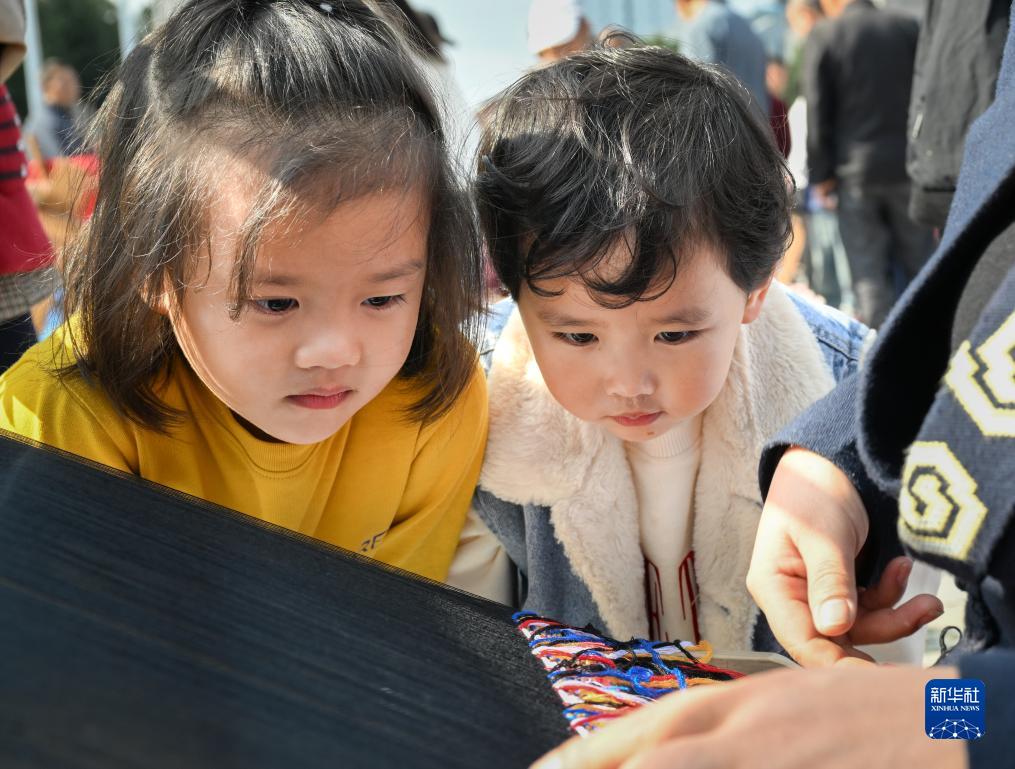 10月28日,小朋友在觀看“西蘭卡普”制作。