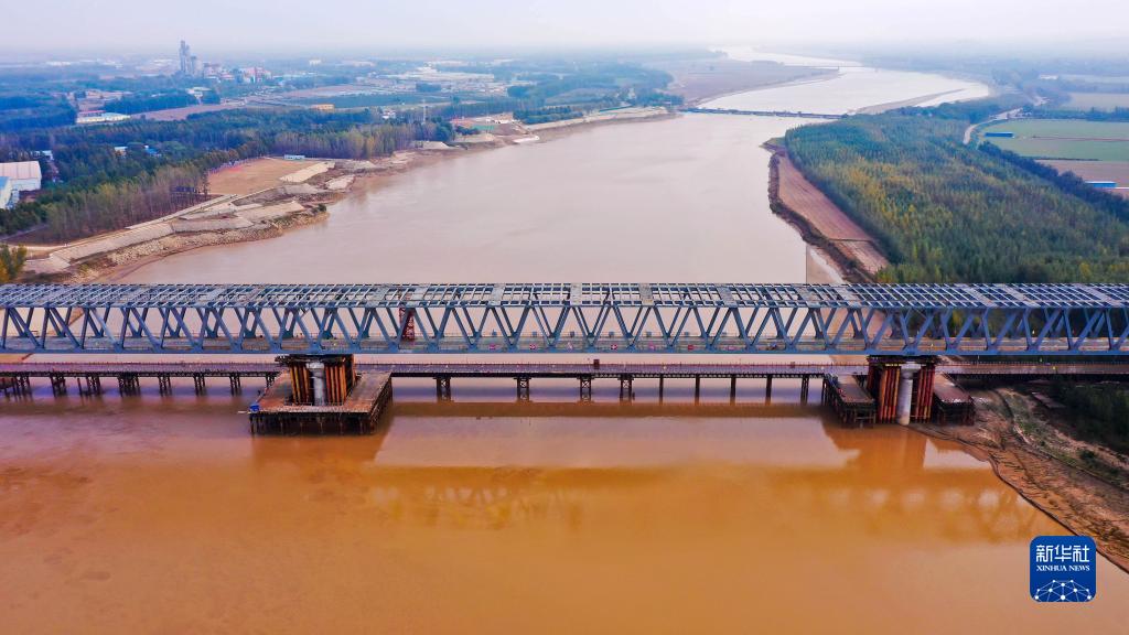 10月28日拍攝的合龍后的聊(城)泰(安)鐵路黃河公鐵橋(無人機照片)。