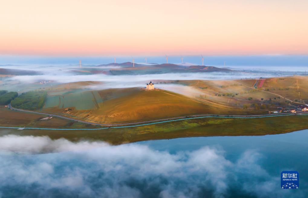 這是9月10日拍攝的河北省沽源縣天鵝湖景觀(無人機照片)。
