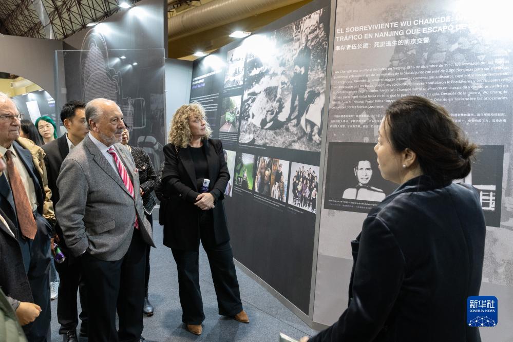 10月26日,觀眾在西班牙馬德里參觀《世界記憶、和平愿景——南京大屠殺史實展》。