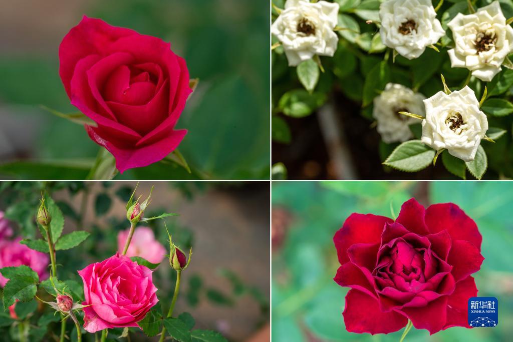 這是云南省安寧市現代農業園區玫瑰種植示范園里玫瑰新品種的拼版照片。
