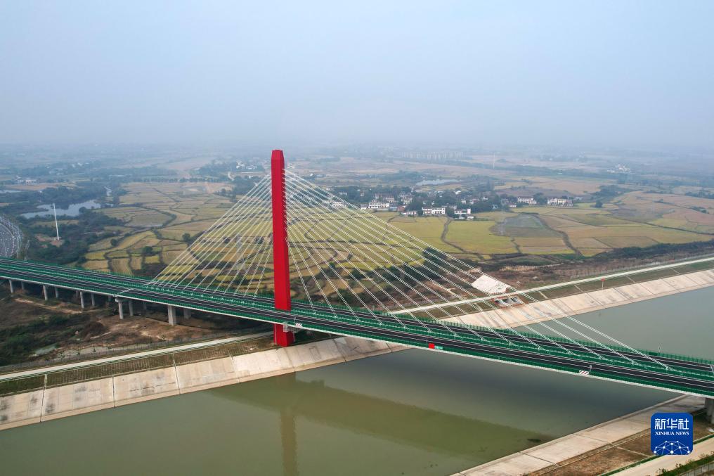 這是10月28日拍攝的無為至岳西高速公路羅埠河特大橋(無人機照片)。
