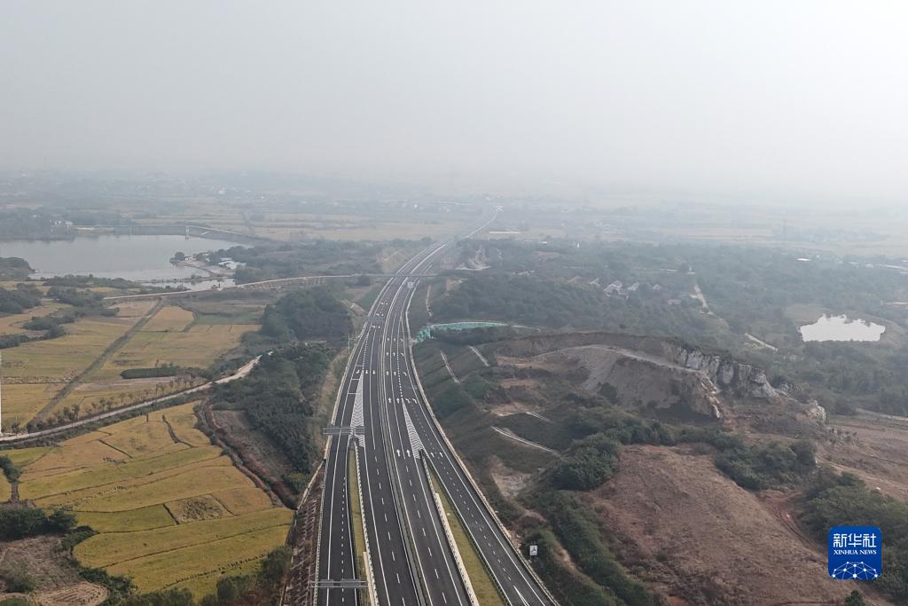 這是10月28日拍攝的通車后的無為至岳西高速公路(無人機照片)。