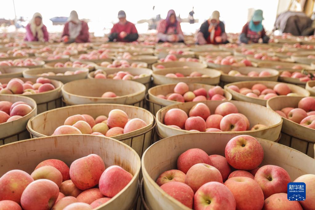連日來,山東省榮成市各大蘋果園里一派繁忙景象,果農們抓緊時間收獲蘋果,分揀、裝運發往各地市場。