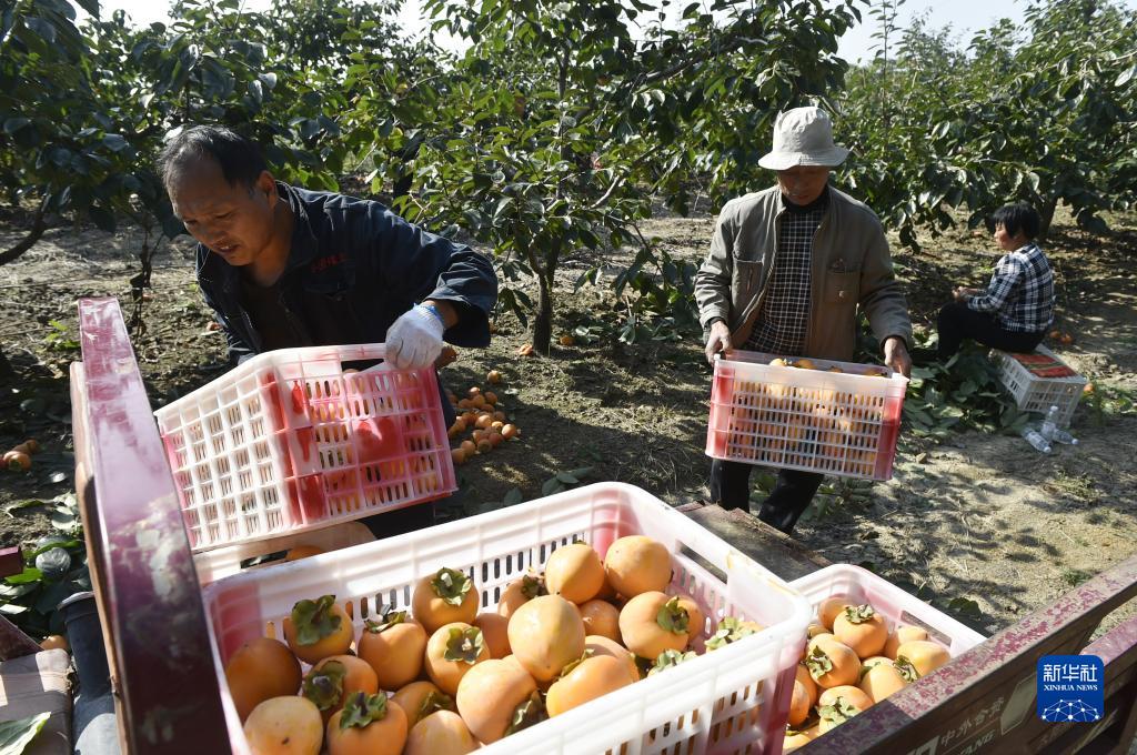 10月28日,村民在禹州市磨街鄉劉門村的柿園里搬運剛采摘的柿子。