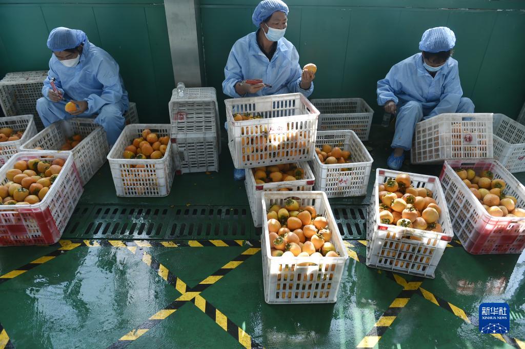 10月28日,村民在禹州市磨街鄉劉門村的加工廠里篩選柿子。