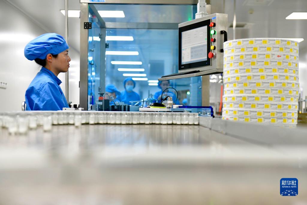 10月29日,在山東二葉制藥有限公司,工作人員在藥品生產線值守。