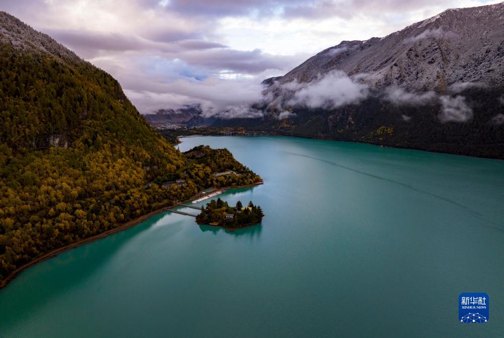 這是在林芝工布江達縣拍攝的巴松錯(無人機照片,10月28日攝)。