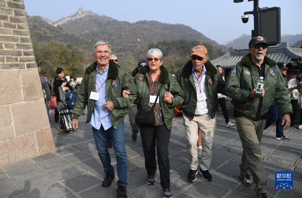10月29日,飛虎隊老兵莫耶(前右二)在北京八達嶺長城參觀。