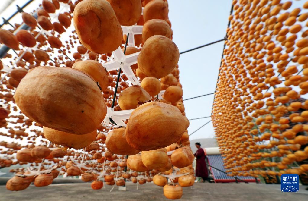 10月29日,河北省順平縣安陽鎮永勝村的果農楊沙沙在晾曬柿餅。