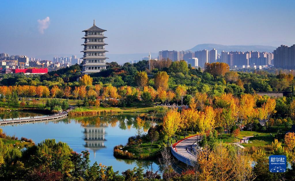 金秋時節,西安世博園內色彩斑斕,秋景迷人。