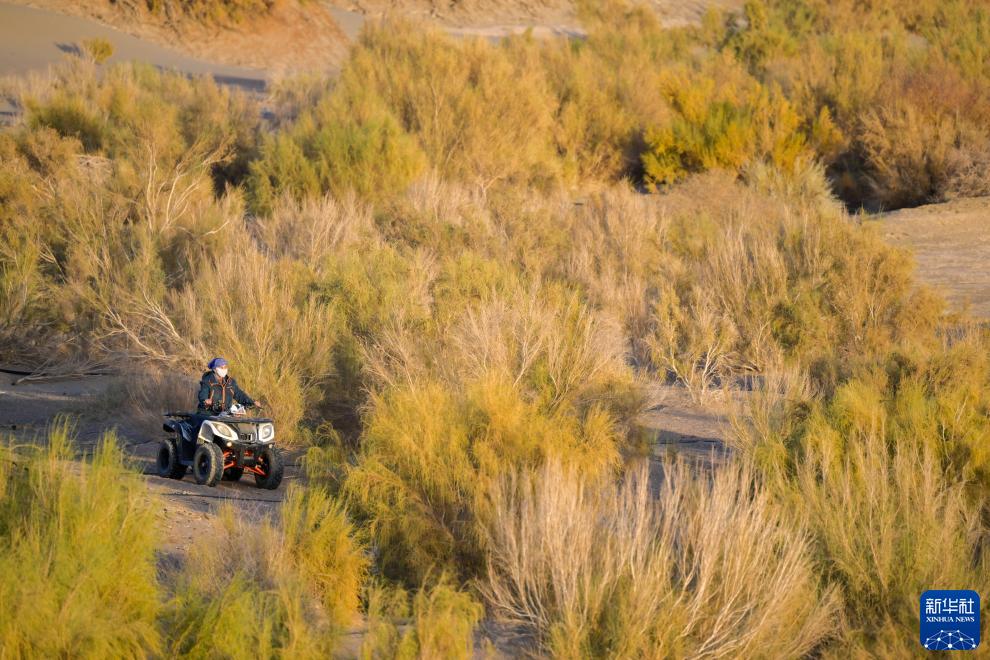 在黑城遺址附近,還保留著蘇和與德力格2004年扎根沙漠時建的三間平房,如今這里已是一片綠蔭?!吧衬薰钡募胰藗兘舆^蘇和老人的擔子,在人跡罕至的沙漠深處譜寫生命與綠色的贊歌。