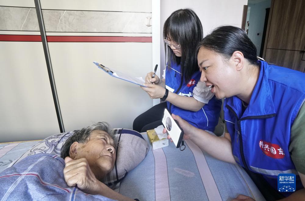 2023年8月31日,北京市大興區龐各莊鎮隆興園社區政務服務中心的工作人員上門為行動不便的老人辦理社保人臉識別業務。