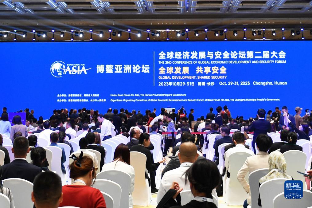 當日,以“全球發展 共享安全”為主題的博鰲亞洲論壇全球經濟發展與安全論壇第二屆大會在湖南長沙開幕。