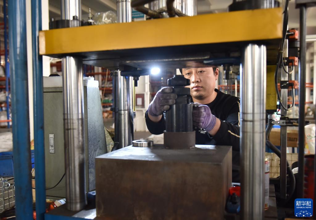 10月30日,威縣一家汽車配件生產企業工人在生產線上加工發動機支架。