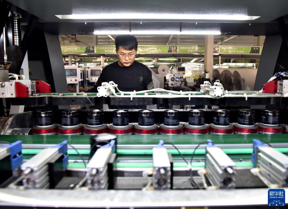10月30日,威縣一家汽車濾芯生產企業工人在生產線上工作。