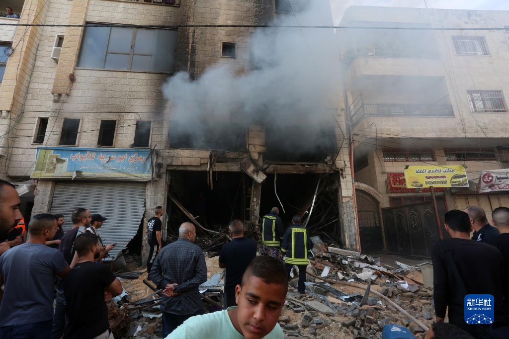 10月30日,在約旦河西岸城市杰寧,人們查看一處損毀的建筑。