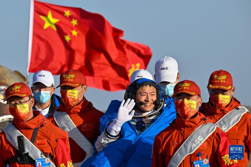 10月31日,神舟十六號載人飛船返回艙在東風著陸場成功著陸。這是航天員桂海潮安全順利出艙。