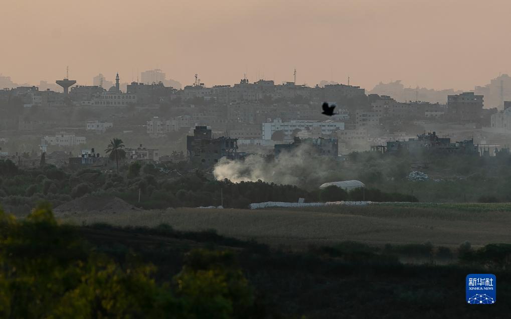 這張10月30日在加沙邊境以色列一側拍攝的照片顯示,加沙地帶北部區域被以軍襲擊后升起濃煙。