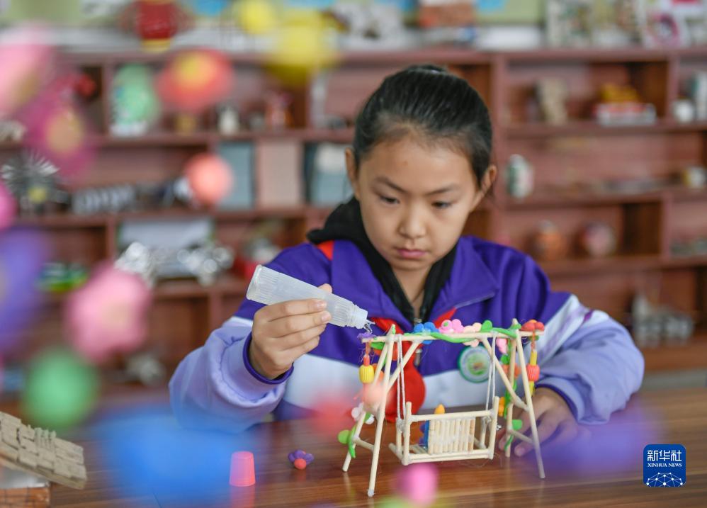 10月31日,河北省遵化市東舊寨鎮梁屯中心小學的學生利用廢棄物品做飾品。