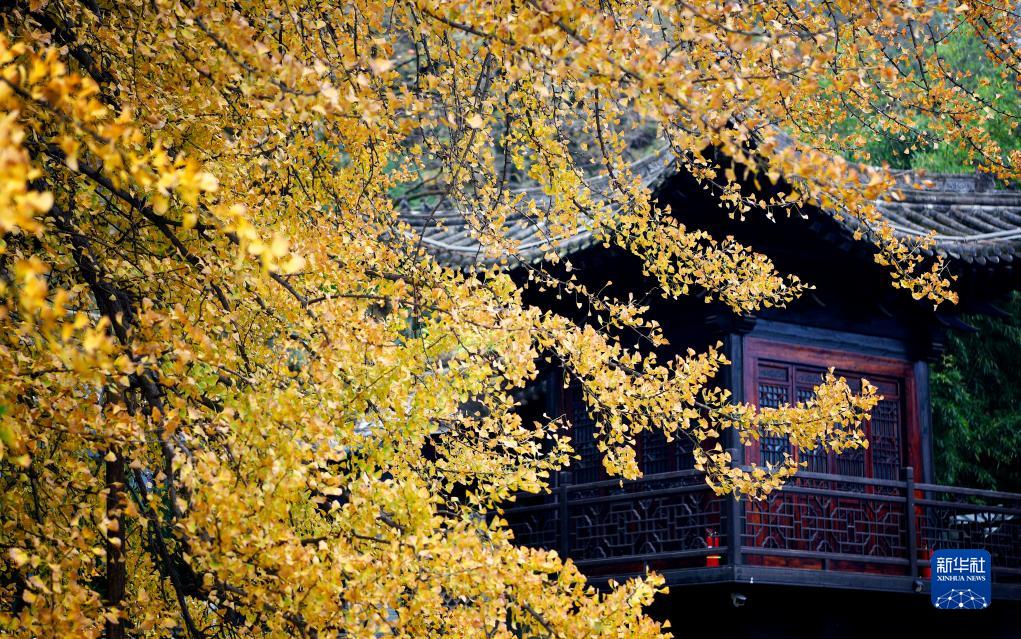 深秋時節,陜西省西安市長安區終南山古觀音禪寺內的千年銀杏滿目金黃,吸引游客參觀游覽。