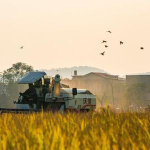 10月29日,在湖南省婁底市雙峰縣梓門橋鎮八仙村,農民駕駛農機收割晚稻。