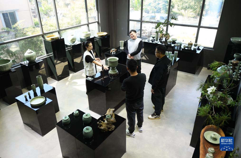 “95后”陶瓷夫妻檔季雙俊和季資美是高中和大學時的同學,因為共同的興趣走到一起。從景德鎮陶瓷工藝美院畢業后回到故鄉龍泉,夫妻二人在甌江旁的爐田村駐扎下來,成立了“梅夫人”工作室,潛心鉆研北宋風格的青瓷器。兩人從古瓷中尋找靈感,力圖重現北宋龍泉窯的胎釉特點,并借鑒青銅器、金銀器、古代服裝上的紋樣,在瓷上傾注對傳統文化的熱愛。