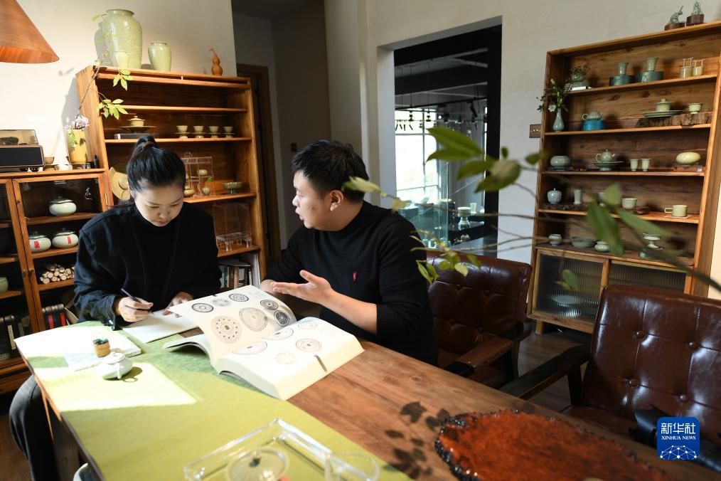 “95后”陶瓷夫妻檔季雙俊和季資美是高中和大學時的同學,因為共同的興趣走到一起。從景德鎮陶瓷工藝美院畢業后回到故鄉龍泉,夫妻二人在甌江旁的爐田村駐扎下來,成立了“梅夫人”工作室,潛心鉆研北宋風格的青瓷器。兩人從古瓷中尋找靈感,力圖重現北宋龍泉窯的胎釉特點,并借鑒青銅器、金銀器、古代服裝上的紋樣,在瓷上傾注對傳統文化的熱愛。