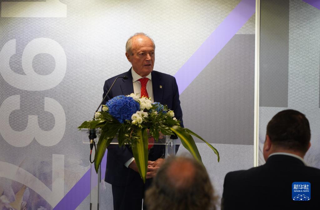 10月30日,在匈牙利布達佩斯,匈牙利前總理邁杰?!け说迷凇妒澜缬洃?、和平愿景——南京大屠殺史實展》開展儀式上致辭。