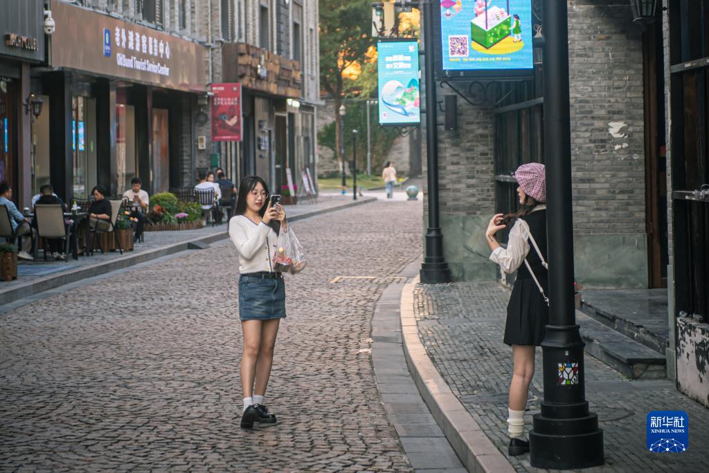 10月31日,游客在寧波老外灘步行街拍照。
