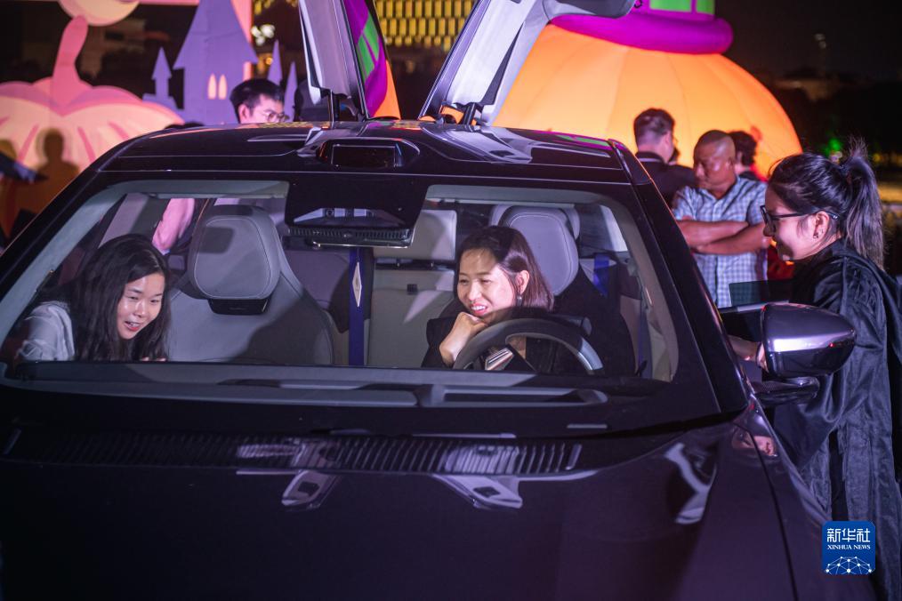 10月31日,游客在寧波老外灘步行街舉行的車展上體驗新能源汽車。