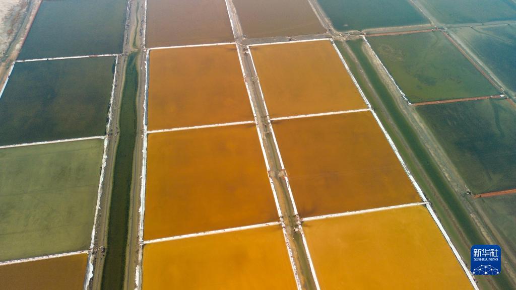 深秋時節,遼寧省營口市老邊區的鹽田色彩斑斕,宛如大地的調色板,美不勝收。
