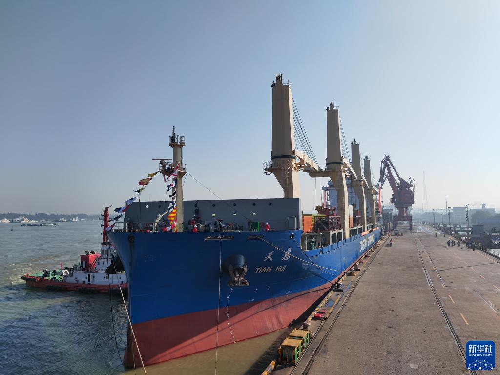 11月1日,“天惠”輪貨船在張家港港整裝待發。