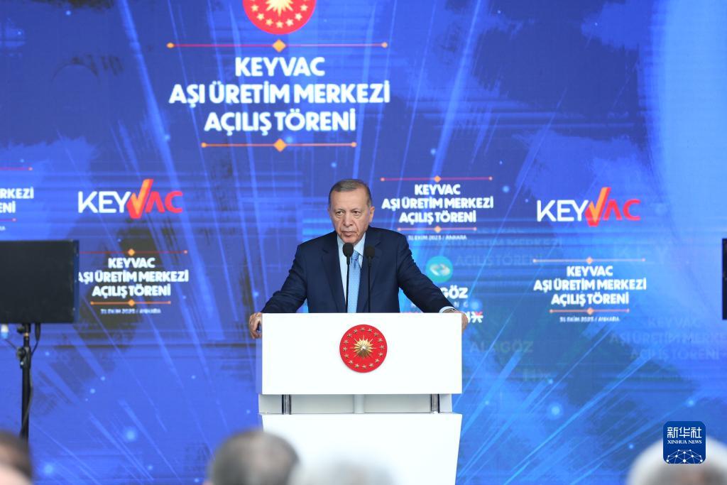 10月31日,土耳其總統埃爾多安在安卡拉舉行的疫苗生產中心啟用投產儀式上講話。