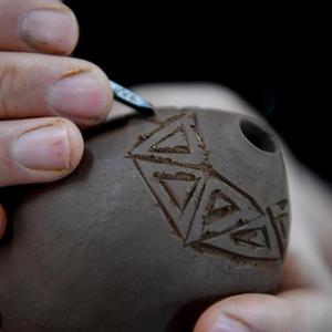 焦作市非物質文化遺產黃河泥塤制作技藝代表性傳承人王建是土生土長的武陟人,他自幼與音樂結緣,三十余年來潛心研究,專注手工制作黃河泥塤,用塤樂語言講述黃河故事。取自黃河灘地的泥土加入水的滋潤,再經由王建的一雙巧手,經過數十道工序被塑造成形狀各異的黃河泥塤。談起自己的初心和夢想,王建說,他用黃河水、黃河泥制作黃河泥塤,用黃河泥塤吹奏黃河音樂,用黃河音樂傳播黃河文化。