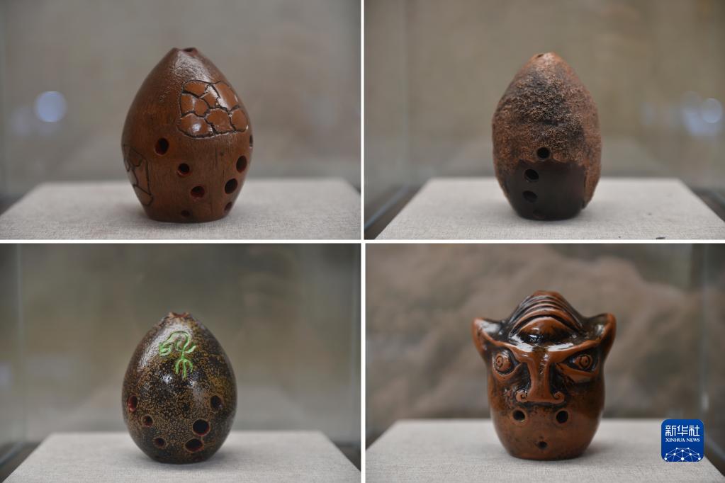 這是在河南省武陟縣黃河交通學院黃河文化館內拍攝的黃河泥塤(拼版照片,10月31日攝)。