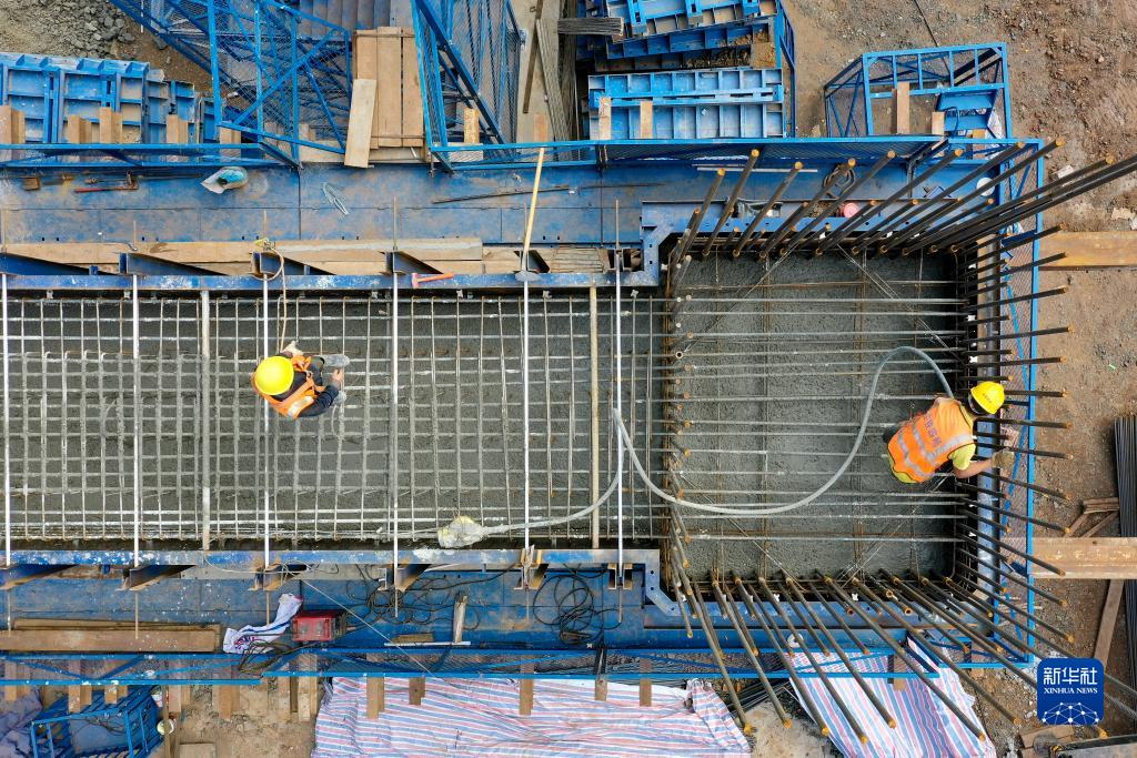 11月1日,正在進行橋墩施工的老猴沖大橋(無人機照片)。