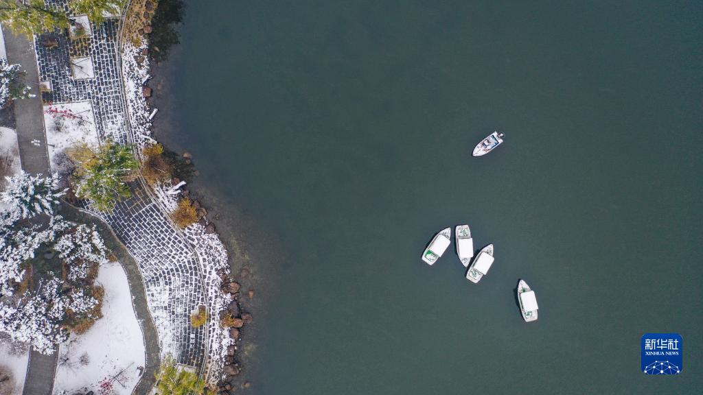 11月1日拍攝的長春市南湖公園雪景(無人機照片)。